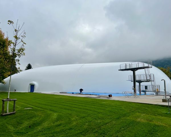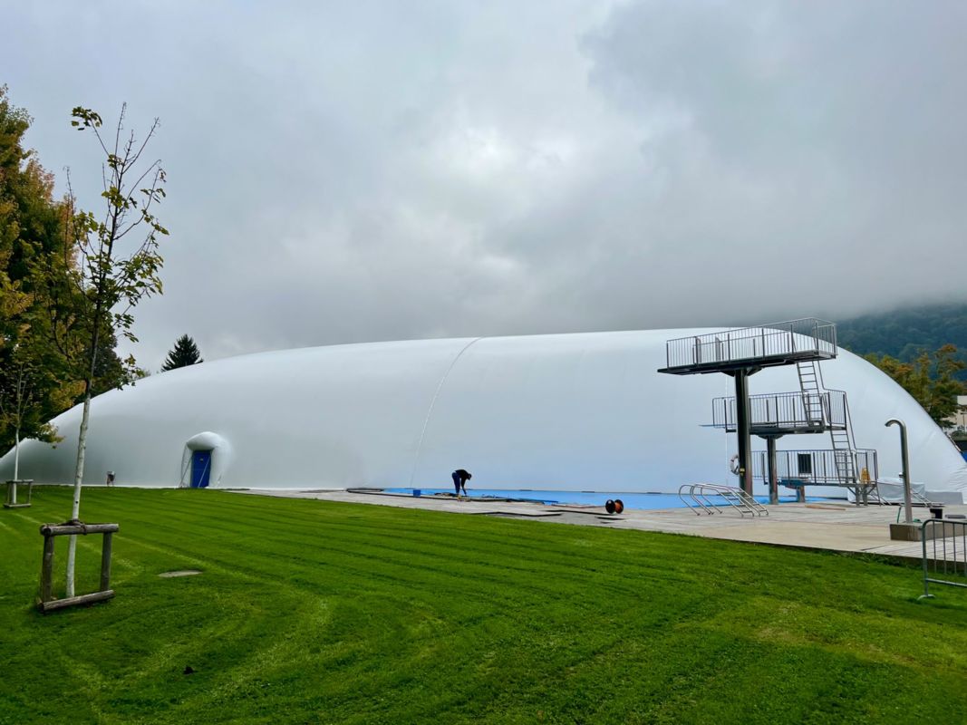 Vom 20. Oktober 2025 bis zum 3. April 2026 steht die Traglufthalle über dem Freibad Lerchenfeld der Bevölkerung als «Winterbad» zur Verfügung. Das Hallenbad Provisorium Lerchenfeld dient als Übergangslösung, solange das Hallenbad Blumenwies erneuert und erweitert wird.
