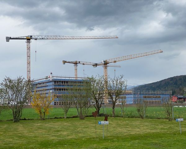 Die Baustelle schreitet planmässig und gut voran. Die Holzbauten wurden inzwischen aufgerichtet und prägen das Erscheinungsbild vor Ort deutlich. Die verschiedenen Gebäudestrukturen sind nun im Umfeld gut sichtbar und vermitteln bereits einen klaren Eindruck des künftigen Gesamtprojekts.